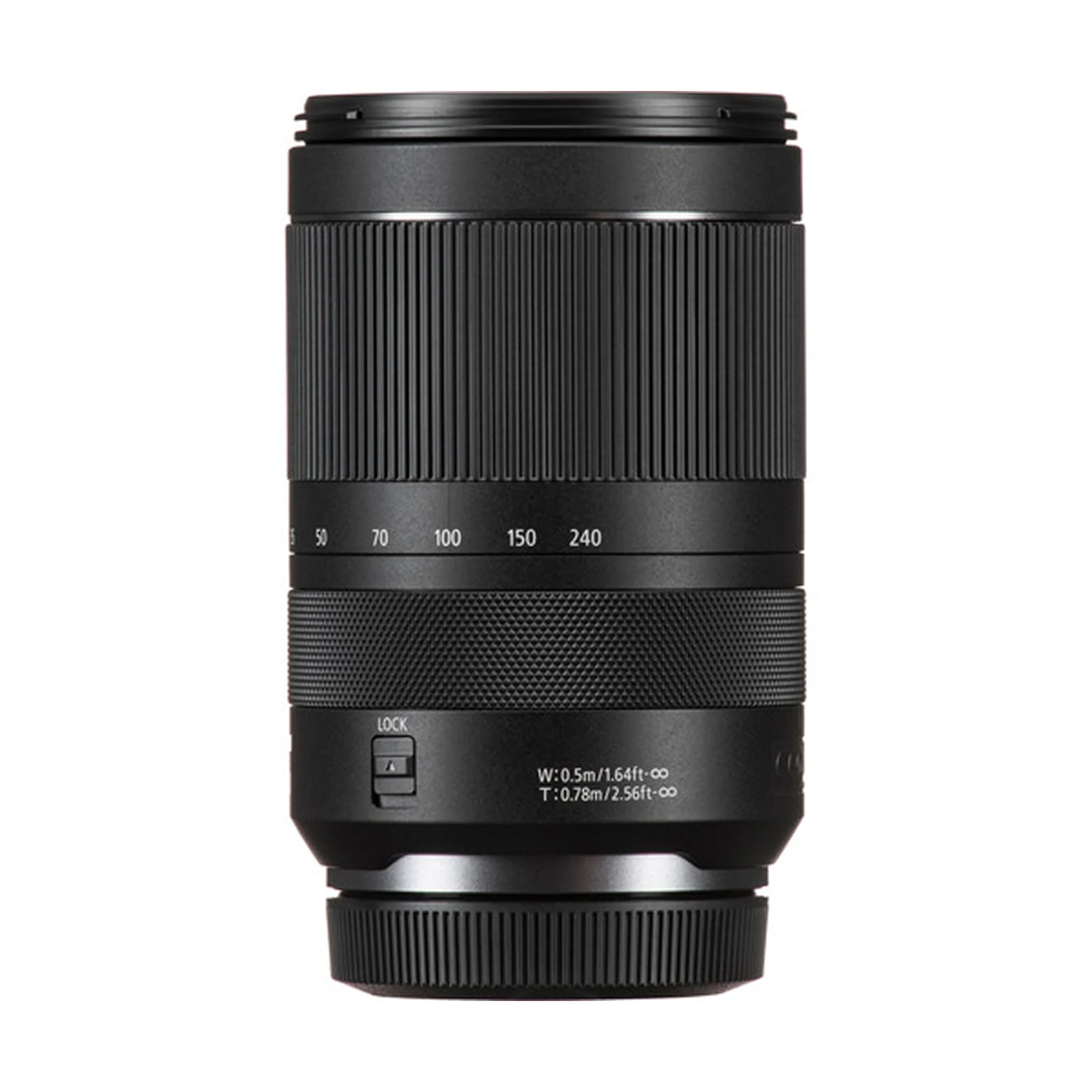 In terms of close‑up capability, the RF 24‑240mm can focus as close as approximately 0.5 m (1.64 ft) at the wide end and 0.78 m (2.56 ft) at the telephoto end, with a maximum magnification of approximately 0.26× at 240mm, allowing for decent subject isolation and detail capture without changing lenses.