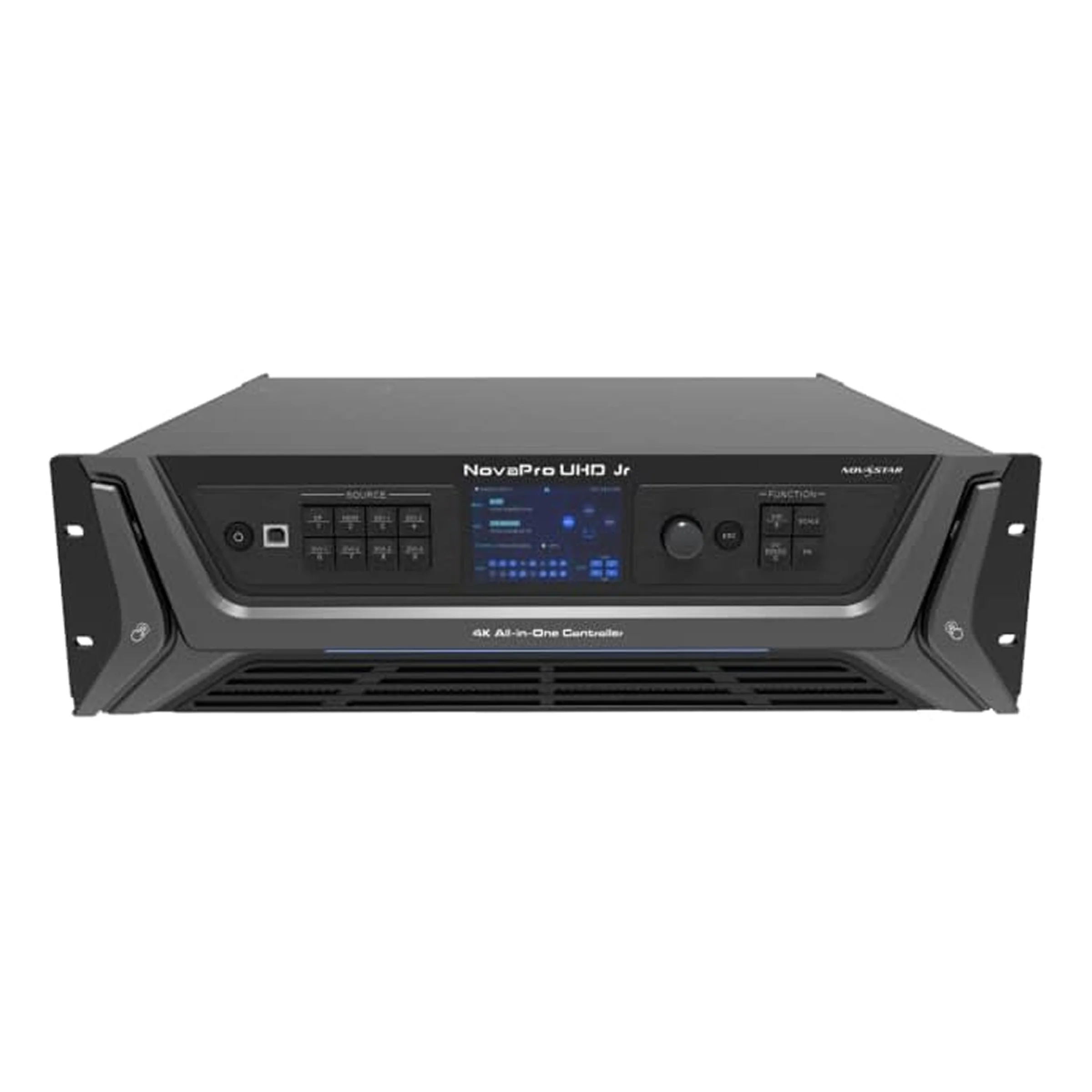 The NovaPro UHD Jr is a compact yet powerful all-in-one 4K LED video screen controller designed for professional LED display applications that demand high resolution, reliability, and operational simplicity. Combining video processing, LED display control, and monitoring into a single unit, the NovaPro UHD Jr is an ideal solution for small to mid-sized LED walls, corporate environments, broadcast studios, control rooms, rental staging, and fixed installations.